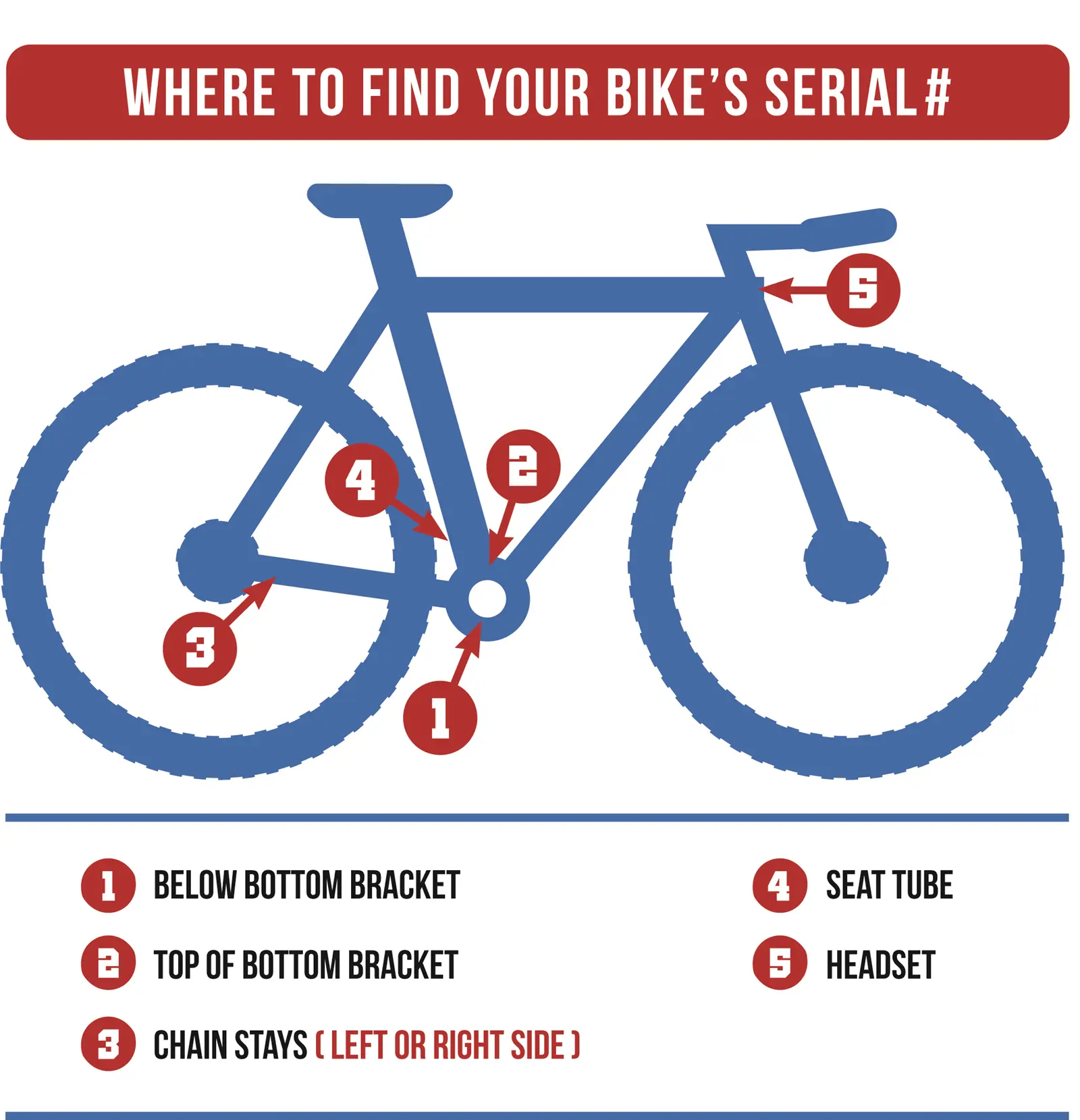 If no serial number exists but you would like to add one to your frame, contact bikeshop@uml.edu to set up an appointment at the UML Bike Shop.