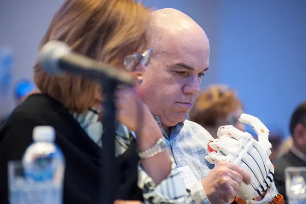 During its pitch, the eNABLE team showed pictures of Ethan, an 8-year-old Florida boy born with a right hand with a thumb and no fingers, who is using the first of the team’s prosthetic hands.