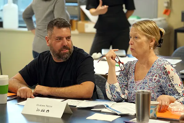 Rooney-Varga gave teachers a preview of the new En-ROADS Climate Solutions Simulator, which she has helped develop through her work with Climate Interactive. Through role-playing, teachers learned how changes in energy, land use, consumption and agriculture policies affect climate goals.