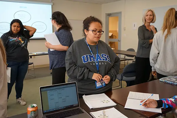 Although FAHSS Career Exploration Seminar is offered specifically for students in that college, it’s fine with Apigian if students change to a major outside the college. About 70 percent of UML students change majors their first year, on par with the national average, and nearly 60 percent also change colleges.