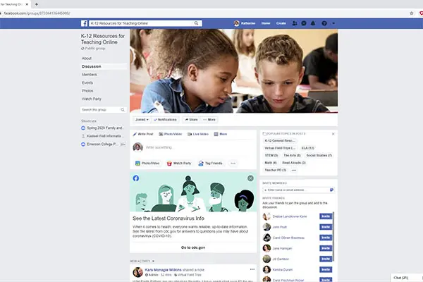 With help from two friends who are education technology specialists – Kara Wilkins in the Lowell Public Schools, who is also a teacher ambassador for PBS, and Kathleen Pantaleo of the William Floyd School District in New York – Scribner-MacLean created a Facebook group: K-12 Resources for Teaching Online.