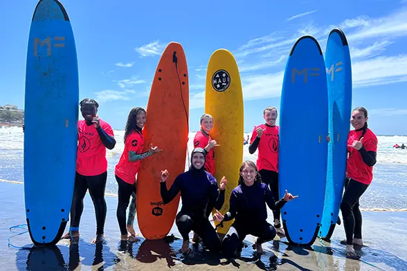 “I did not want to do it at first,” Kania says of the lesson, which was part of her group’s visit with the Valpo Surf Project, a non-governmental organization that uses surfing to help underprivileged and at-risk youth from the Chilean port city of Valparaíso.