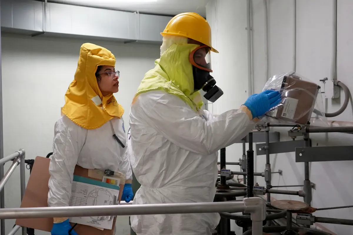 The students began by selecting the appropriate PPE to wear to prevent contamination. They then entered the controlled environment, where they used instruments such as a portable ionization chamber to measure ambient radiation levels. The students worked as a team to accurately transcribe their findings.