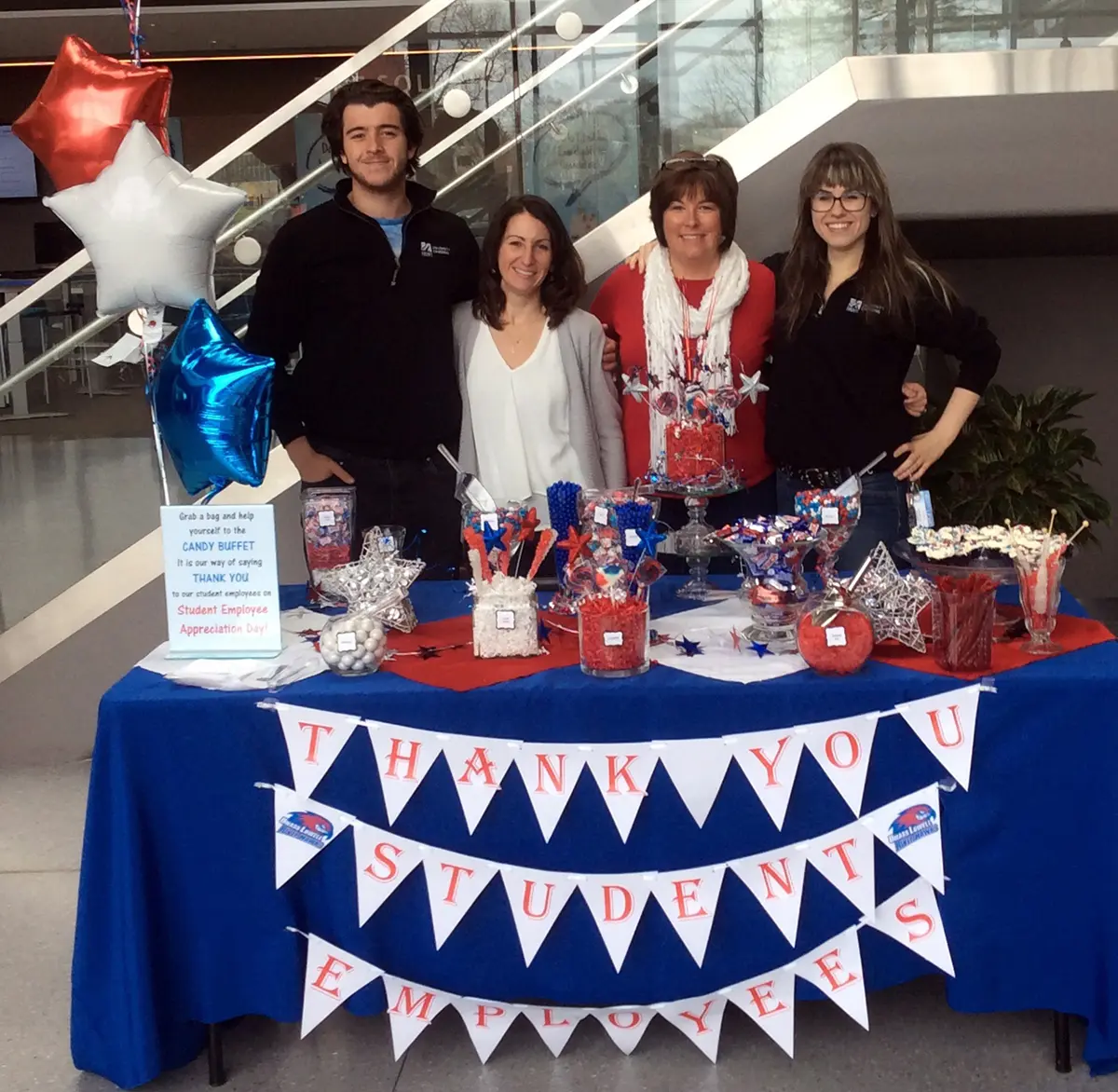During this week, student employees at UMass Lowell are honored in unique ways, often by celebrating with treats from their employers, ranging from grab bags containing snacks and sweets and/or small supplies for finals, to full-blown pizza parties, to taking a few moments out of their busy work day for some fun team building activities.